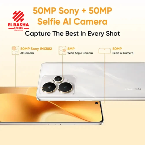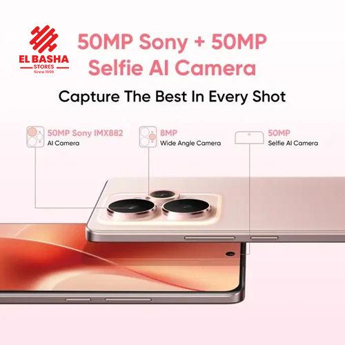 الكاميرا الرئيسية: 50 ميجابكسل، فتحة العدسة f/1.8، مستشعر Sony IMX882، مع تثبيت الصورة بصرياً (OIS)