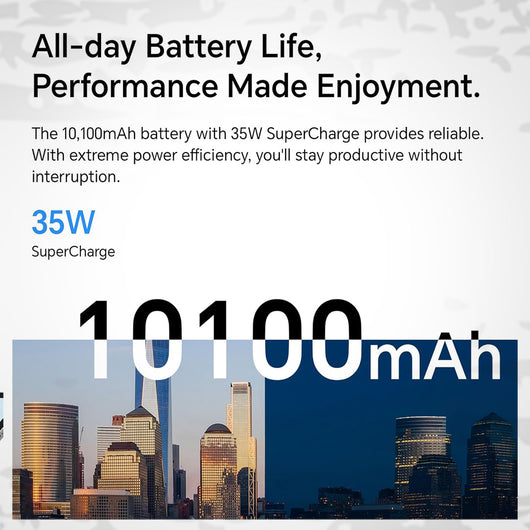 - All-day Battery Life,Performance Made Enjoyment: The 10,100mAh battery with 35W SuperCharge provides reliable. With extreme power efficiency, you'll stay productive without interruption.