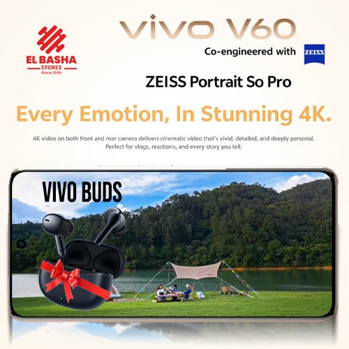 The Vivo V60 5G, where cutting-edge performance meets unparalleled design. Perfectly crafted for those who demand the best, the V60 5G is a smartphone that redefines your everyday experience with style, power, and innovation. Step into a new world of visual brilliance with the Vivo V60’s 6.77-inch Quad Curved AMOLED display. This expansive, edge-to-edge screen offers deep blacks, vibrant colours, and stunning contrast, making every image and video come to life. With a peak brightness of 5000 nits, enjoy crisp visuals even in bright outdoor environments. Whether you're gaming, watching movies, or browsing, experience fluid, immersive visuals like never before. The Qualcomm Snapdragon 7 Gen 4 chipset ensures smooth and lightning-fast performance, even during the most demanding tasks. From gaming marathons to multitasking between apps, the Vivo V60 5G handles it all effortlessly, delivering the speed and efficiency you need for a seamless experience. Transform the way you capture memories with the Vivo V60’s 50MP Multifocal Portrait Camera, enhanced with ZEISS optics for flawless selfies. The rear camera setup includes a 50MP OIS Main Camera and 50MP Wide-Angle Camera, complemented by AI Aura Light Portrait technology, making every photo sharp, vivid, and full of detail, day or night. Stay powered throughout the day with the 6500mAh Blue Volt battery, engineered to keep you connected, entertained, and productive. With 90W Supersonic Charging, get a quick power boost in just minutes—giving you hours of use without the long wait. Say goodbye to battery anxiety and hello to non-stop performance. Built to withstand life's challenges, the Vivo V60 is IP68 and IP69 rated for dust and water resistance. Whether you're caught in the rain or heading out on your next adventure, you can rely on the Vivo V60 5G to stay strong and keep performing. Enjoy a richer, more immersive sound experience with dual speakers that bring your music, movies, and games to life. Every note, every dialogue, and every sound effect are crystal clear, providing a theatre-like experience in the palm of your hand. The Vivo V60 5G is more than just a smartphone; it’s a next-gen powerhouse designed for those who seek the ultimate in performance, design, and reliability. Elevate your lifestyle today.